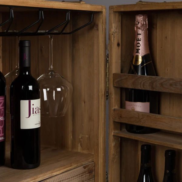 - Met flessennest voor 15 flessen en 2 lades met ijzeren handgrepen en labelhouders