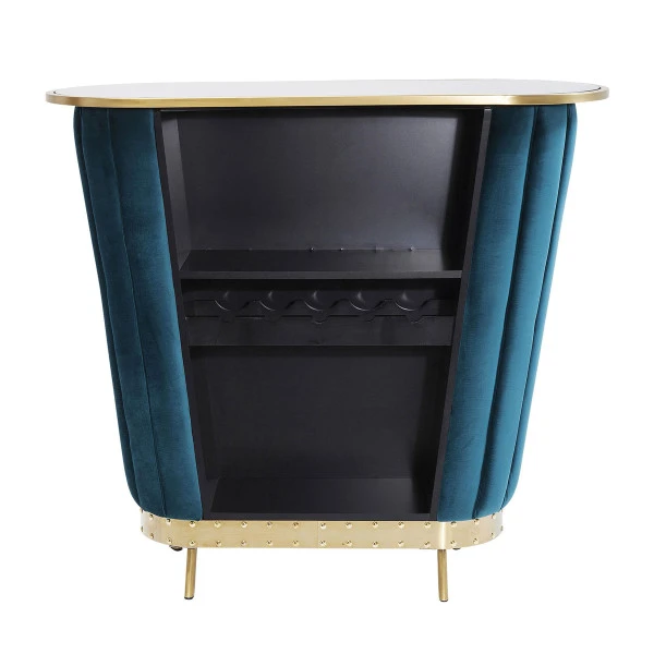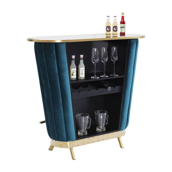 Met de Kare Design After Work huisbar in de woonkamer of eetkamer nodig je steeds vaker een stel vrienden uit voor een gezellige vrijdagmiddagborrel! De huisbar heeft een chique en extravagante uitstraling: het perfecte decor voor een klein feestje. Gekleurd glas en glimmende details vormen een chique frame om de huisbar van fluweel. In een groot vak aan de achterzijde kun je flessen en glazen opbergen.