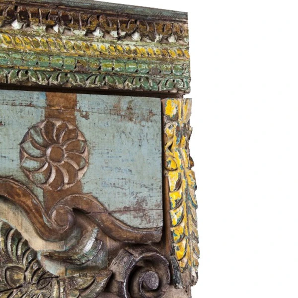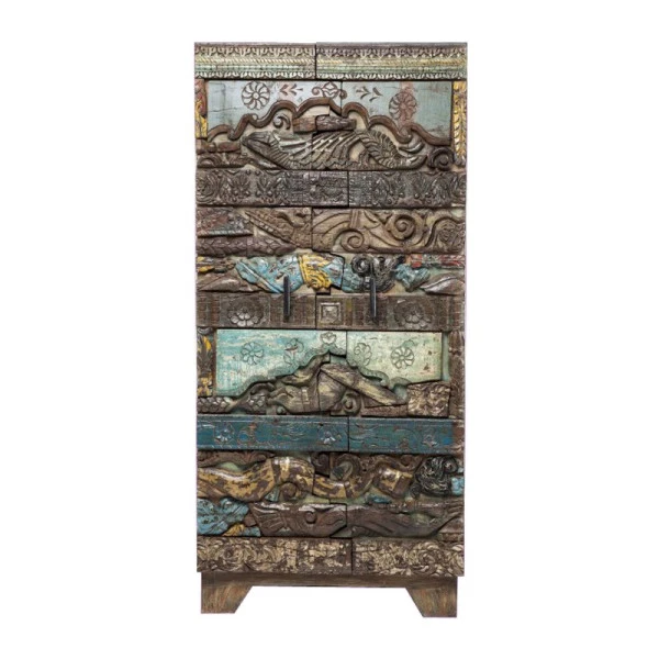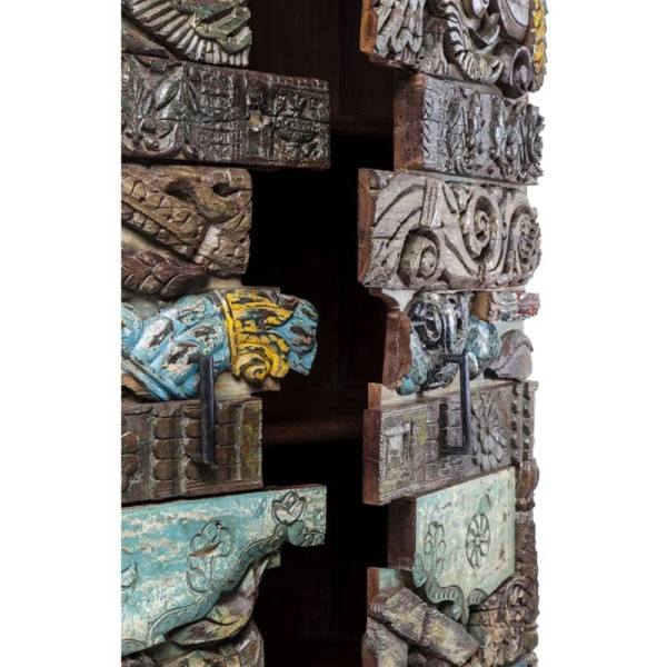 In de wandkast Kare Design Shanti Surprise Puzzle blíjf je nieuwe details ontdekken! Het ambachtelijk houtsnijwerk is sfeervol en geeft het meubel een authentiek karakter. Met een omvang van 180 bij 85 centimeter vormt de wandkast een opvallende verschijning en dat is maar goed ook: het prachtige snijwerk mag gezien worden. Leuk in de woonkamer voor losse rommeltjes, of als kledingkast op de slaapkamer.