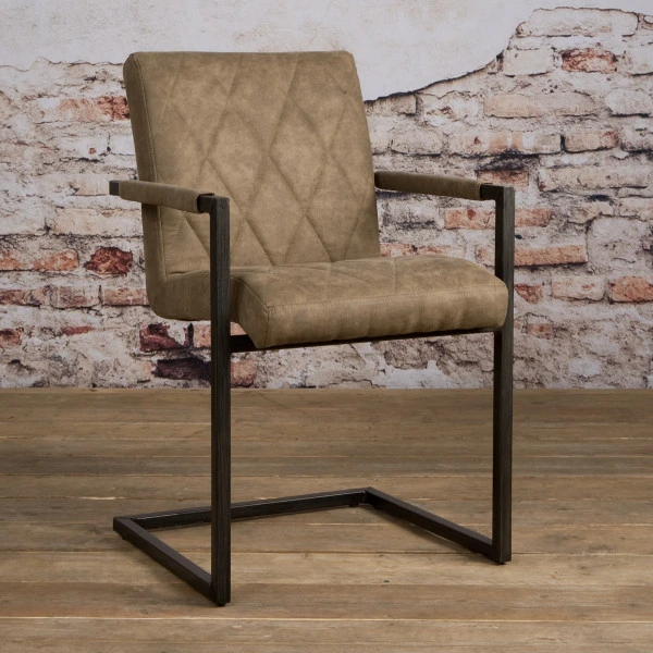 Bij de Tower Living Oledo eetkamerstoel heb je keuze uit drie kleuren: antraciet, cognac en taupe. Welke is jouw favoriet? Je kunt natuurlijk ook twee kleuren aan je industriële eettafel schuiven voor een speels effect. Dat gaat mooi samen met het gestikt ruitmotief in de bekleding; ook speels, en een beetje vintage!