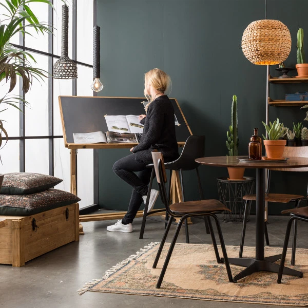 - Op zwart gepoedercoat stalen frame met voetsteun en anti-krasbeschermers