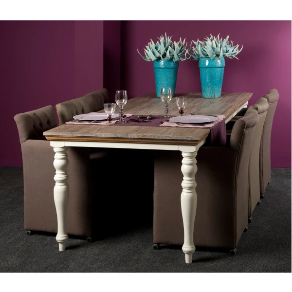 De Tower Living Fleur eettafel brengt een romantische, landelijke sfeer naar je eetkamer. Het grenenhouten blad is voorzien van een greywash voor een vintage effect, terwijl de witte poten een klassieke lijn volgen. Je hebt keuze uit vijf formaten – met een breedte van 160 tot wel 240 centimeter- zodat je altijd een mooie maat voor in jouw eetkamer kunt vinden!