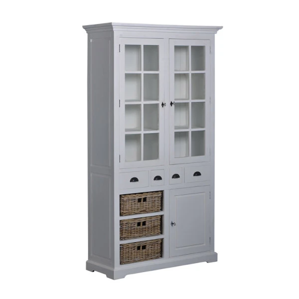 De Tower Living Napoli serie kenmerkt zich door een landelijke uitstraling met een moderne touch: daar zorgt de strakke afwerking voor. De manden geven de meubels nét wat extra sfeer! Behalve deze vitrinekast vind je in de serie ook een grotere buffetkast, een landelijke eettafel en een bijpassend dressoir.