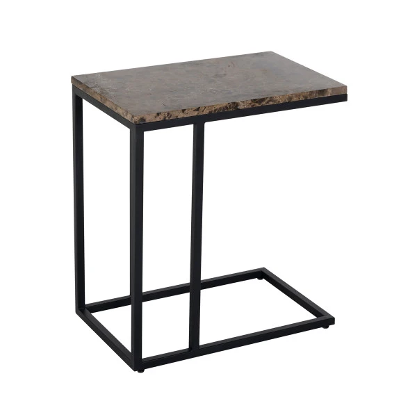 Dit Richmond Interiors Orion laptoptafeltje is een mooi voorbeeld van modern industrieel design. De slanke vormgeving en het blad van emperador marmer zorgen voor een modern effect, terwijl het zwarte staal een stoere uitstraling geeft. Je schuift dit laptoptafeltje handig over de zitting van de bank, zodat je er de laptop of een bord met eten op kunt zetten.