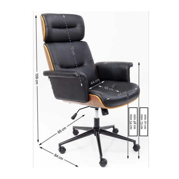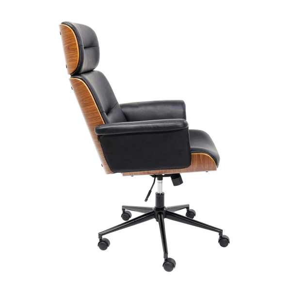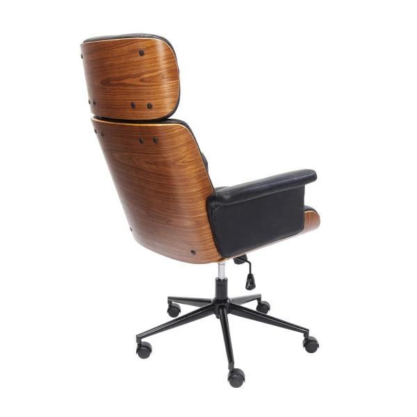 De Kare Design Check Out bureaustoel kun je heel goed in de woonkamer gebruiken; met dit stijlvolle design doet de bureaustoel niet onder voor je design meubels! Dat, en het grote zitcomfort, maken de leren bureaustoel ideaal voor thuiswerkers. De achterzijde is bekleed met hout in een warme walnoot tint.
