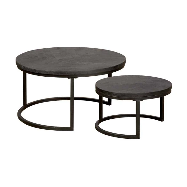 Bij deze Tower Living Viola salontafelset heb je keuze uit twee kleurvarianten: met een zwart of naturel mangohouten blad, op een zwart metalen onderstel. Welke salontafelset is jouw favoriet? Schuif de kleine tafel deels onder de grote, of helemaal wanneer je ruimte nodig hebt in de zithoek. Naast elkaar bieden de tafels veel plaats voor koffie, wijn en lekkers.