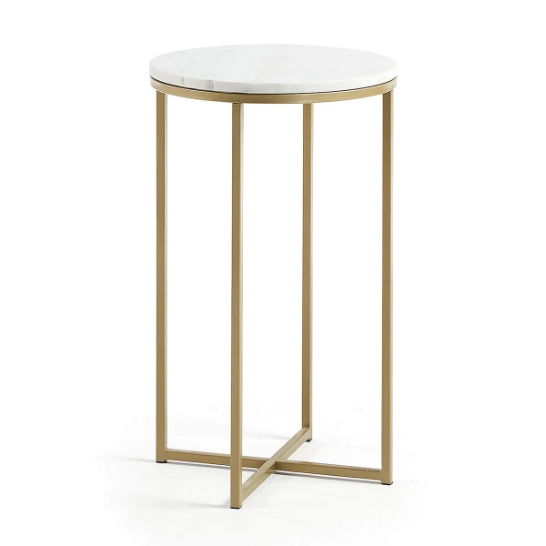 De Kave Home Sheffield bijzettafel is bijzonder stijlvol. Het ronde, marmeren blad prijkt op een onderstel van metaal met een chique goudkleur. Ook de statige lijnen van het onderstel dragen bij aan het stijlvolle design van de bijzettafel! Op het ronde blad van 43 centimeter is plaats voor een gezellige decoratie plus je kop koffie of glas wijn. Geef de marmeren bijzettafel een mooi plekje in de zithoek of combineer met een luxe fauteuil!