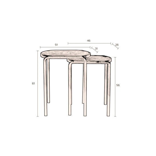De Dutchbone Bandhu bijzettafelset kun je op talloze manieren inzetten. De kleine tafel past namelijk precies onder de grotere. Zet ze speels bij elkaar tegen de muur, met mooie decoraties erop. Of verdeel de messing bijzettafelset juist over de zithoek: één naast de bank en één naast je favoriete fauteuil!