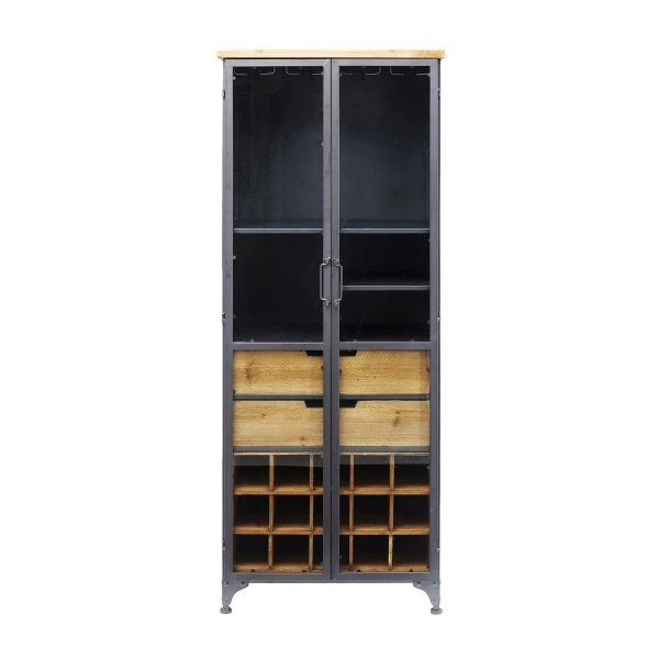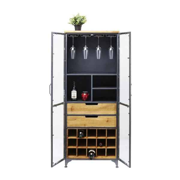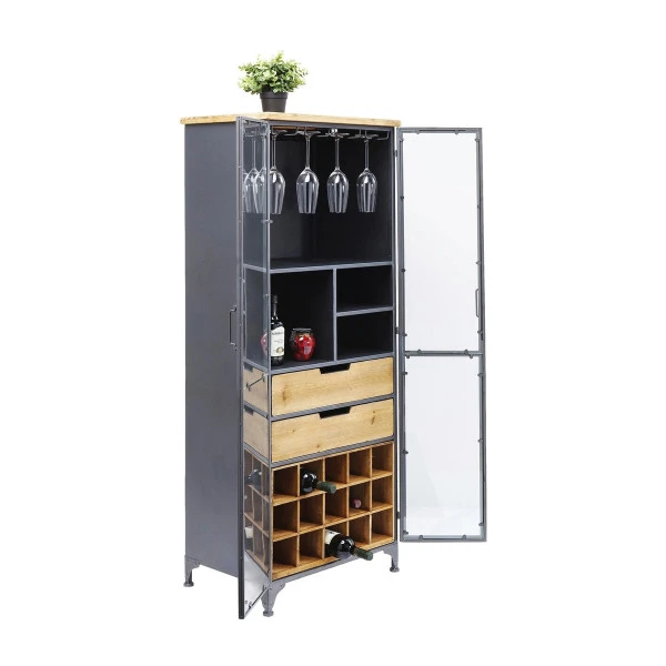 In deze Kare Design Refugio wijnkast is plaats voor je verzameling wijnen én wijnglazen. Ook een flessenopener, andere flessen drank, borrelglazen en nog wat extra rommeltjes kun je kwijt in deze ruime, metalen wijnkast met hout. Achter de glazen deuren zijn je wijnflessen en glazen nog mooi zichtbaar.