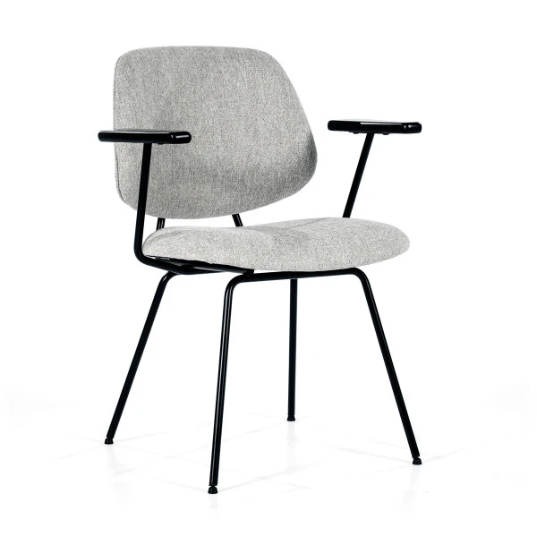 Het design van de Eleonora Lynn eetkamerstoel met arm is minimalistisch en modern. De gemêleerde stoffering geeft de kleuren een zachte tint, waardoor de eetkamerstoel ook een zachte uitstraling krijgt. Daarbij heb je keuze uit drie kleuren gemêleerde stof: beige, grijs en roze. Kies je favoriet of combineer meerdere kleuren voor een speels effect aan tafel!