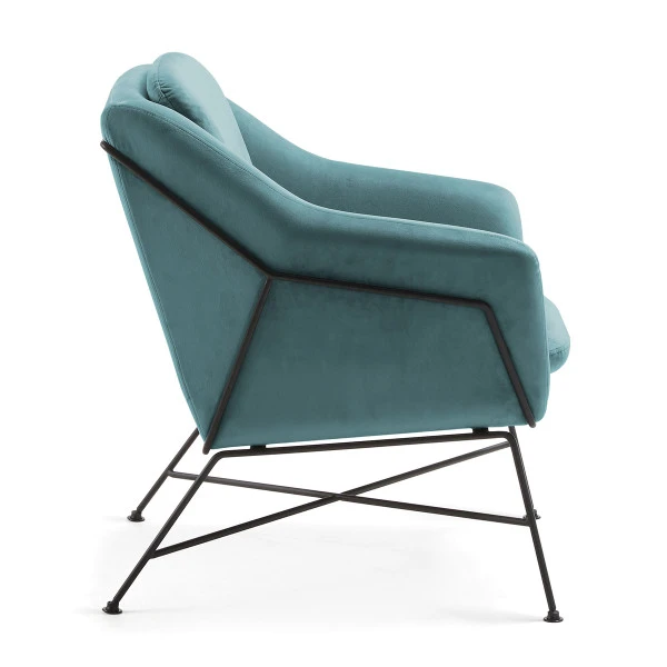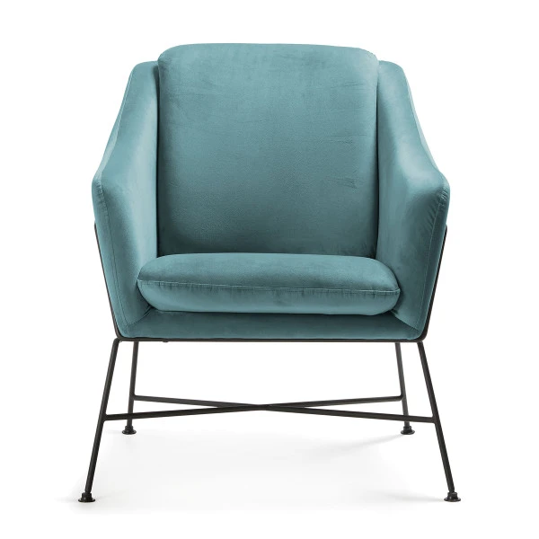 De Kave Home Brida armfauteuil bewijst het: design en comfort gaan hand in hand. De zachte kussens van fluweel worden gedragen door een slank onderstel van zwart gelakt metaal. Daardoor past de armfauteuil heel goed in een moderne woonstijl! Maar het fluweel zorgt ook voor een retro tintje.