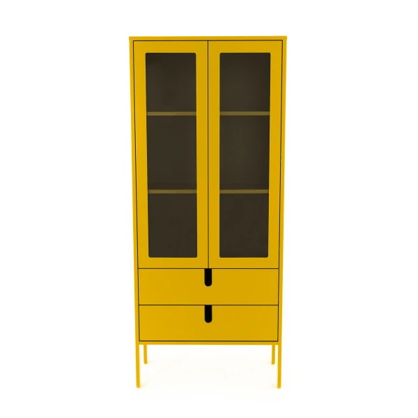 Deze hoge Tenzo Uno vitrinekast heeft een moderne uitstraling met een speels tintje. Een prachtig meubel voor je favoriete borden, soepkommen en koffiekopjes! Of gebruik de hoge vitrinekast in de woonkamer voor leuke decoraties. Je hebt keuze uit 5 verschillende kleuren gelakt hout: wit, groen, grijs, geel of blauw. Welke vitrinekast past het beste in jouw interieur?