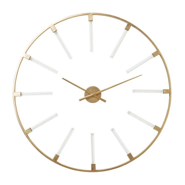 De Kare Design Visible Sticks wandklok is gemaakt van gepoedercoat staal met doorzichtige details die de “cijfers” verlengen. Zo kun je ook op afstand duidelijk aflezen hoe laat het is. De moderne wandklok heeft een warme messing tint en gaat samen met verschillende kleuren muren. Houten meubels en vloeren combineren mooi met de wandklok!