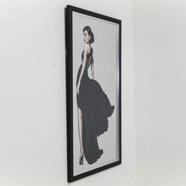 De Kare Design Audrey muurdecoratie geeft je woonruimte stijl. De elegante Audrey Hepburn is bijna levensecht dankzij een formaat van 172x100cm! Hang de muurdecoratie naast de bank of gebruik als warm welkom in de hal. Dankzij het tijdloze zwarte frame past de muurdecoratie in verschillende woonstijlen, van modern tot vintage.