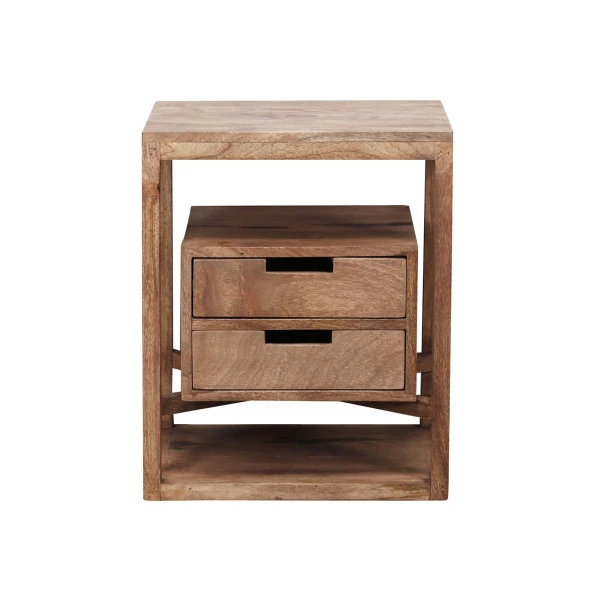 Dit nachtkastje van massief mangohout is voorzien van twee lades, waarin je alle losse rommeltjes kwijt kunt die anders altijd je slaapkamer zo ongezellig maken. Onder de lades is bovendien plaats voor een stapel tijdschriften of je pantoffels. Zet een mooie leeslamp bovenop het blad van mangohout en leg je telefoon plus leesboek in het open vak boven de lades: opgeruimd staat netjes!