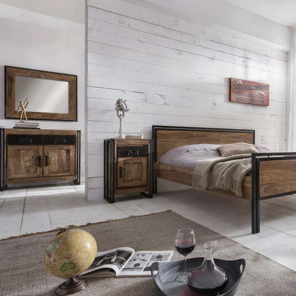 Aan dit stoere nachtkastje kun je je dagboek met een gerust hart toevertrouwen: het kastje ziet eruit alsof hij heel wat (slaapkamer)geheimen kan bewaren. Het zachte karakter van het sheeshamhout vormt een mooi contrast met het zwarte metaal, waardoor het meubel een industriële look krijgt. Een echte aanwinst voor je slaapkamer!