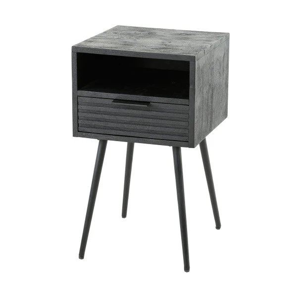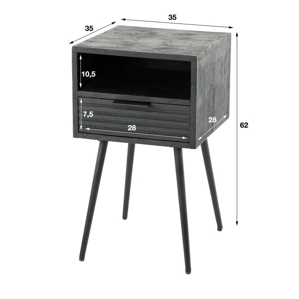 Dit nachtkastje is ruimtelijk en compact, maar biedt toch alles wat je nodig hebt. In de lade kun je kleine rommeltjes kwijt zoals oordopjes en nachtcrème; voor boeken en tijdschriften is plaats in het open vak. Bovenop het nachtkastje van zwart mangohout past een leeslamp en je wekker. Nog een voordeel? Je schuift het nachtkastje zo aan de kant om te stofzuigen.