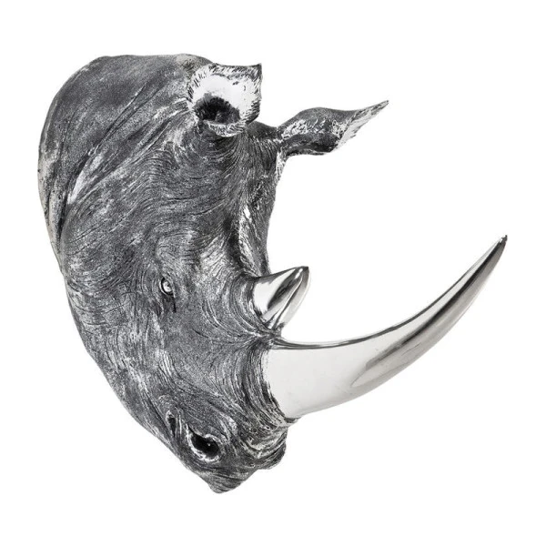 Hang de Kare Design Deco neushoornkop in de hal voor een verbluffende entree van je woning. Of geef de decoratie een mooie plek boven de bank; het is alsof de neushoorn zo je woonkamer binnenstormt. De zilveren neushoornkop gaat samen met vrijwel elke kleur muur en past in verschillende woonstijlen.