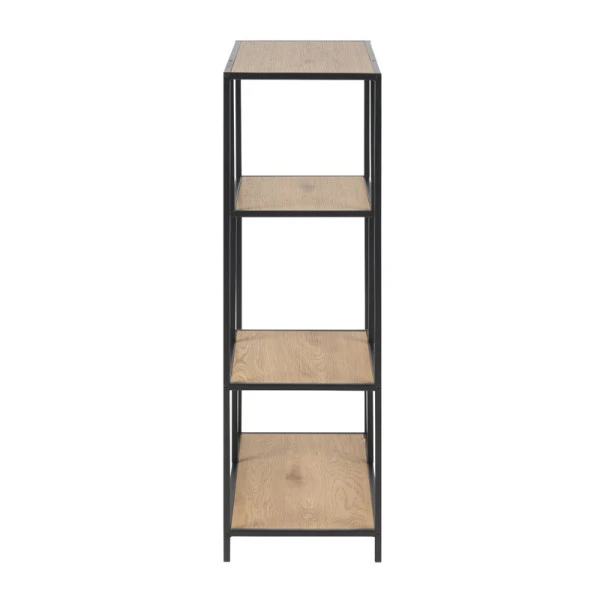 Van deze open boekenkast met metalen frame vind je in de Bjorn serie van Bodio verschillende varianten: met een asymmetrisch design, met 4 of rechte 5 houten planken, laag of hoog… Kies je favoriet en maak je woonkamer in een handomdraai gezellig!