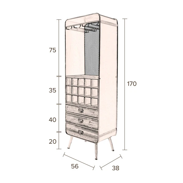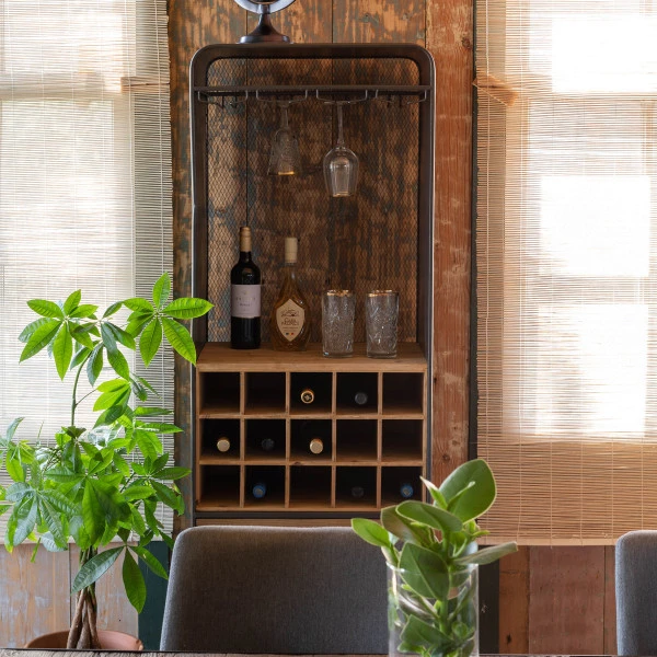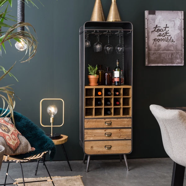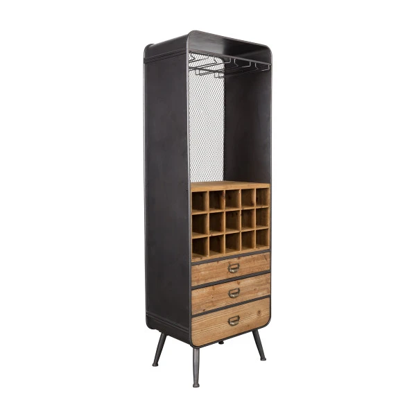 Bijzonder aan de Dutchbone Vino wijnkast is de mix van vurenhout met gehard ijzer; een paneel van gaasijzer maakt het originele design compleet! Je kunt de open wijnkast combineren met zowel een industriële als moderne woonstijl. De houten lades brengen sfeer, en het gaasijzer geeft een uniek accent.