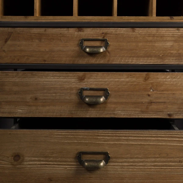 - Flessennest voor 15 flessen en 3 lades van massief vurenhout in antiek finish