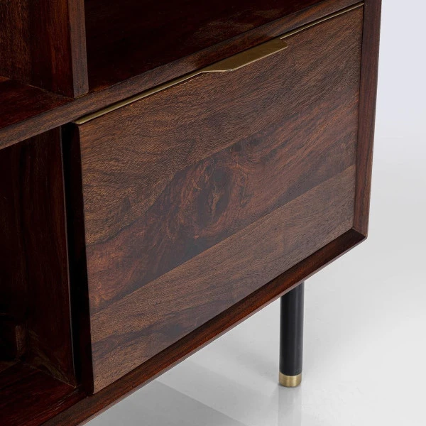 Met de meubels uit de Kare Design Ravello serie creëer je een gezellige, retro look. Daar zorgen de messing details en het prachtige sheesham wel voor! Kijk gauw in de serie voor een bijpassend dressoir of een sheesham spiegel om met je open kledingkast te combineren.