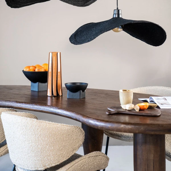 De tafels uit de Eleonora Jodi serie zijn uitgevoerd in een speelse mix van stoer en stijlvol. Deze eettafel is ook verkrijgbaar in zwart mangohout. Kijk gauw verder in de serie voor een bijpassende salontafel van zwart of bruin mangohout, met dezelfde organische vorm!