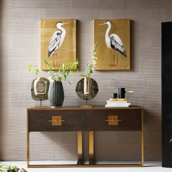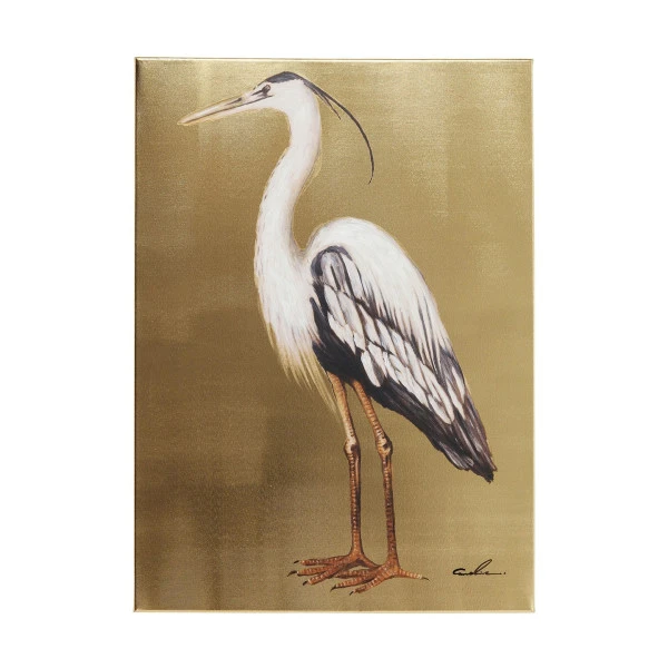 - Goudkleurig schilderij met reiger in Japanse stijl