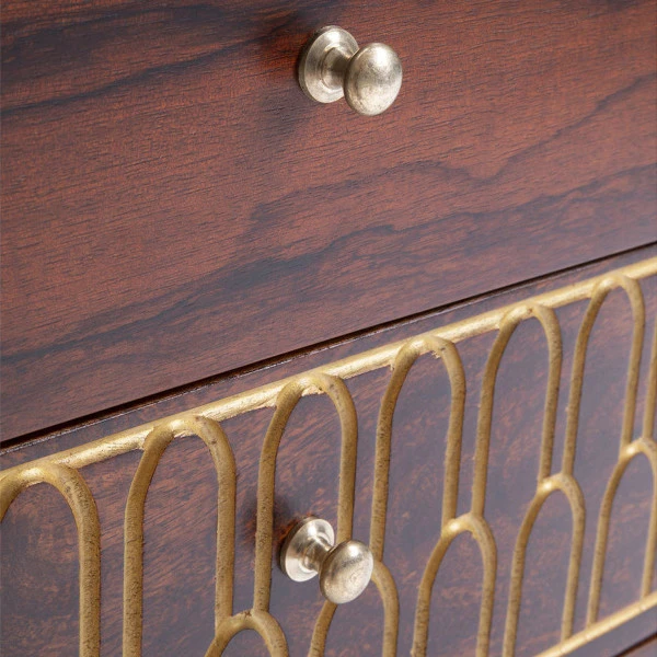 Het Kare Design Muskat nachtkastje straalt een heerlijke retro charme uit dankzij de mix van mangohout en goud. De patronen zijn bovendien met de hand ingezaagd en geverfd! Het nachtkastje is voorzien van twee ruime lades waarin je nachtcrème, tijdschriften en een leesboek kunt bewaren. Ook je telefoon ruim je ’s nachts netjes weg in het nachtkastje: een goede nachtrust begint bij een rustige slaapomgeving!