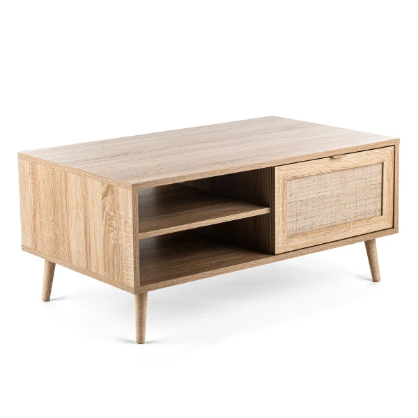 Met deze retro salontafel heb je er niet alleen een tafelblad maar ook een opbergplaats bij! In het open vak met legplank is volop ruimte voor tijdschriften, boeken en de afstandsbediening. Achter het deurtje kun je losse rommeltjes opbergen die anders je zithoek zo ongezellig maken. De eikenlook van de salontafel zorgt bovendien voor extra veel sfeer.