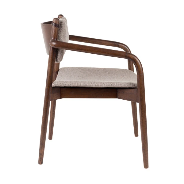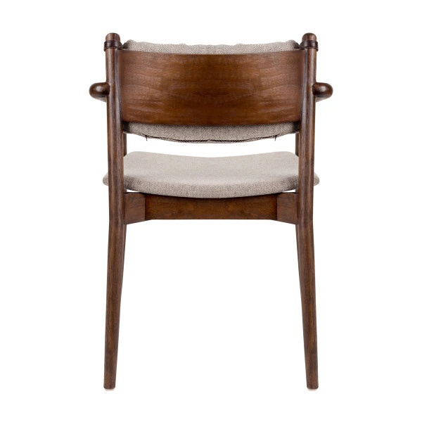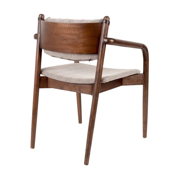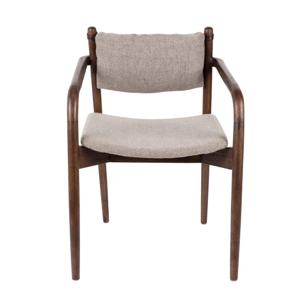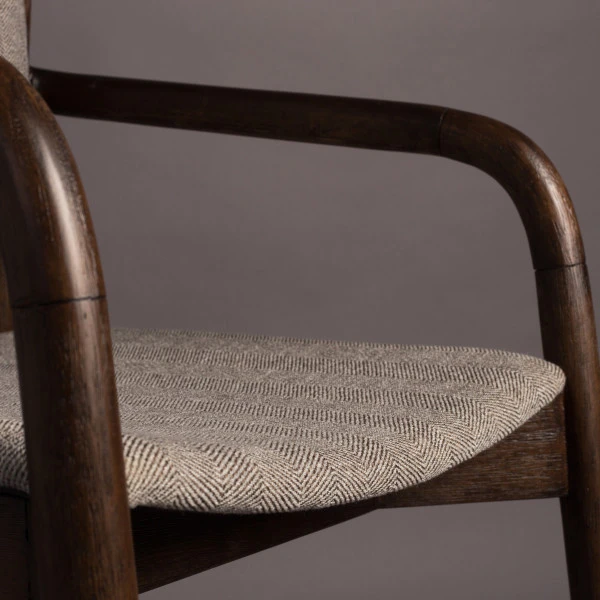 Met de Dutchbone Torrance armstoel van hout creëer je een retro look aan de eettafel! De kussens zijn voorzien van een visgraatpatroon dat heel mooi samengaat met het bruin gelakt massief rubberhout. Bovendien zit de armstoel heel comfortabel dankzij de kussens en luxe armleuningen. Zodat je gasten bij toekomstige diners een mooie, luxe zitplaats aan kunt bieden.