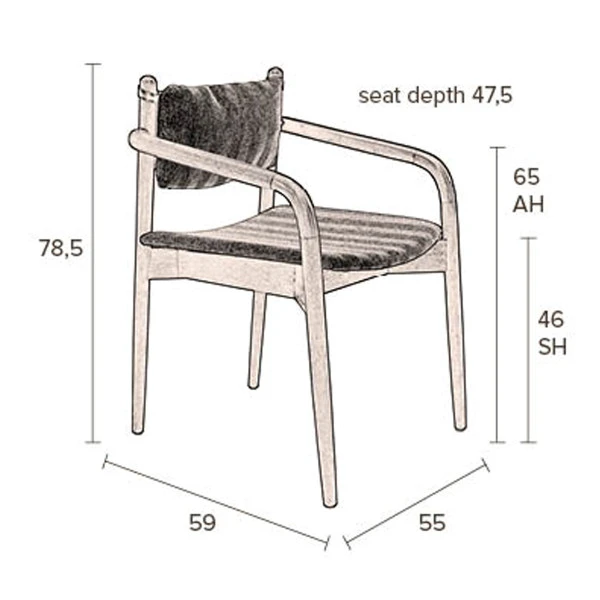 - Zithoogte 46 cm zitdiepte 47,5 cm armhoogte 65 cm