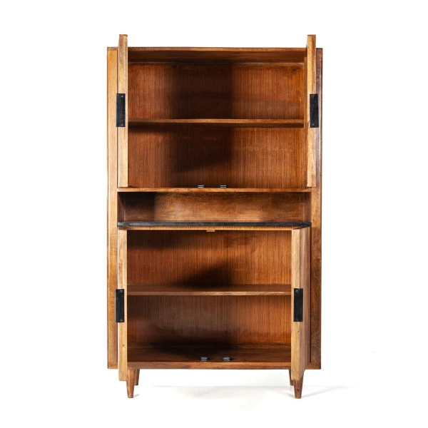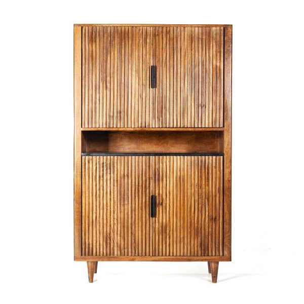 De Eleonora Carter wandkast van mangohout maakt je woonruimte in één klap gezellig! Het mangohout is geolied voor een prachtig sfeereffect. Zet een paar groene planten naast je nieuwe wandkast en de retro look is compleet! In de wandkast van 105 bij 172 centimeter is veel ruimte voor boeken, administratie, fotoalbums of juist serviesgoed. Het open vak kun je vullen met enkele mooie decoraties.