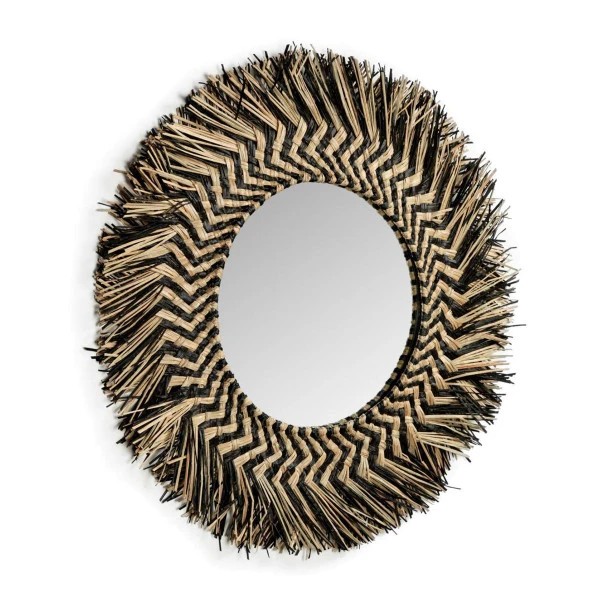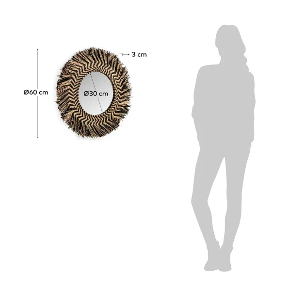 De Kave Home Takashi spiegel is het zonnetje in huis! Het riet vormt een vrolijke kraag om die spiegel, als de stralen van de zon die je huis verwarmen. Met een diameter van 60 centimeter zorgt de ronde spiegel voor veel sfeer. Een gezellige blikvanger!