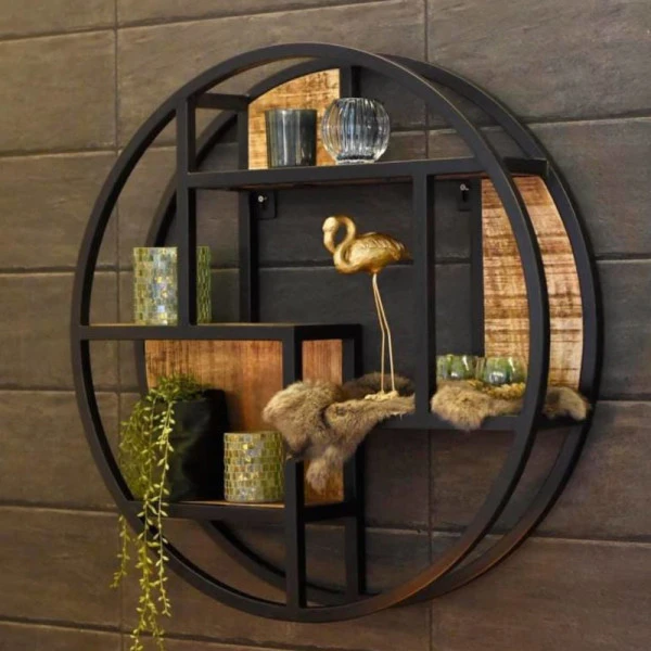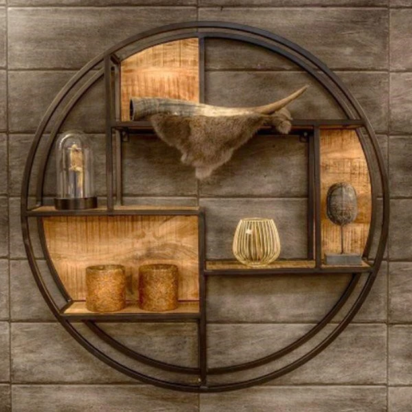 Dit wandrek is rond, maar je kunt ook kiezen voor een vierkant model. Beide varianten zijn gemaakt van donker gelakt metaal met een vintage afwerking. Planken van robuust mango hout geven het wandrek veel sfeer. Een praktische en decoratieve aanwinst voor een landelijk of industrieel interieur!
