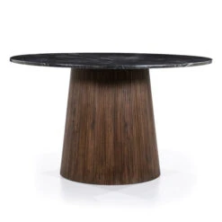 De Eleonora Maxim eettafel vormt een bijzondere verschijning in je interieur. Het ronde blad van echt marmer gaat prachtig samen met de conische voet van mangohout. De natuurlijke materialen zorgen voor sfeer, maar in dit design zeker ook voor veel stijl! Met een diameter van 130 centimeter kun je aan deze ronde eettafel met 4 personen eten. Op een gezellige avond schuif je er zo nog 2 stoelen extra bij!