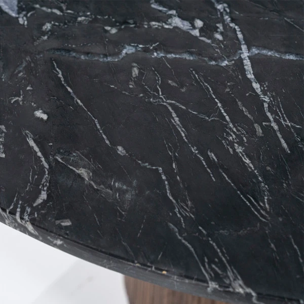 - Rond tafelblad van echt zwart marmer met witte accenten