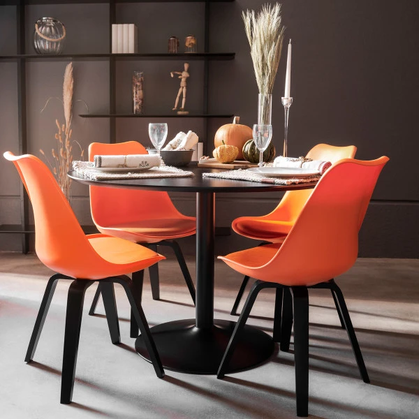 Aan deze ronde Tenzo Taco eettafel van 110 centimeter breed kun je met vier personen van een gezellige maaltijd genieten. Een ronde tafel stimuleert namelijk een open houding: de basis voor goede gesprekken! Bij deze eettafel heb je keuze uit twee varianten: zwart of wit. Een slank blad in combinatie met een trompetvoet geeft de eettafel een stijlvolle uitstraling. Voor in een modern of retro interieur!