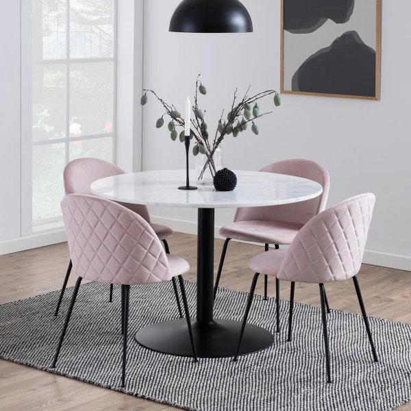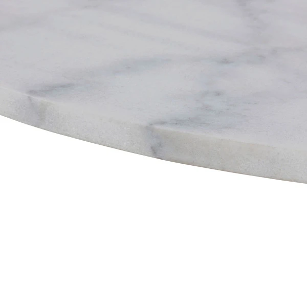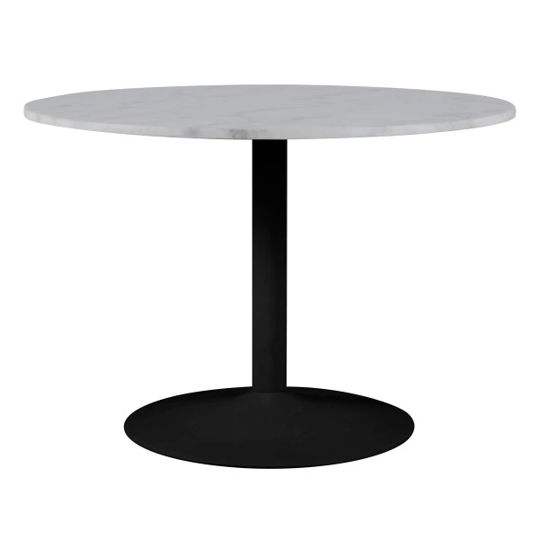 Omdat de ronde eettafel gemaakt is van marmer heeft elke tafel een uniek karakter. De patronen en kleuren in het blad van wit marmer verschillen per tafel! Met een diameter van 110 centimeter biedt de eettafel plaats aan 4 personen, al kun je er tijdens een gezellige spelletjesavond nog wel een extra stoel bij zetten.
