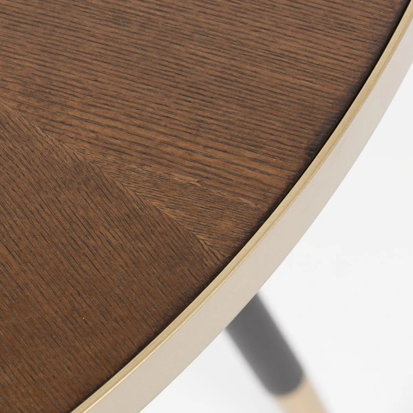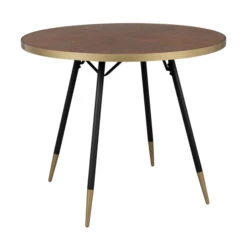 Deze ronde eettafel van walnoot en messing zorgt voor een retro accent in je interieur. De rand van messing versterkt de warme kleur van het walnoot blad en geeft de eettafel een luxe uitstraling! Met een diameter van 91 centimeter is de ronde eettafel heerlijk compact. Ook het ruimtelijke design maakt dat de eettafel een bescheiden plaats in je interieur inneemt!