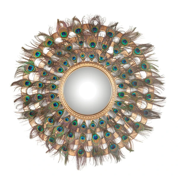 Naar de Richmond Interiors Macynn spiegel blijf je kijken! De lijst is gemaakt van goud metaal met een bijzondere decoratie: de veren van een pauw. Ze vormen een prachtige krans met een bol van goud in het midden, als de zon met pauwenveren als stralen. Waar je de ronde spiegel ook hangt, je blik wordt er meteen naar toe getrokken.