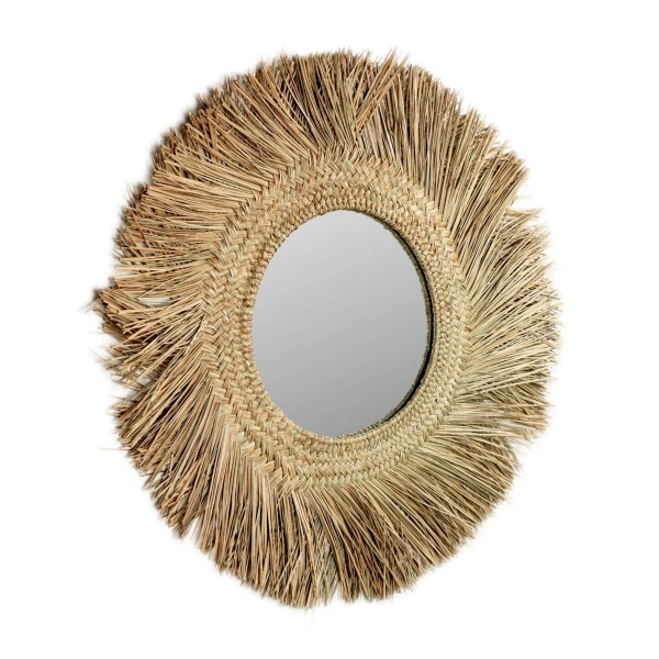 De Kave Home Rumer spiegel maakt elke woonruimte gezellig! De ronde spiegel is omgeven door een lijst van riet, met prachtig vlechtwerk in het midden en speelse sprieten eromheen. Het riet brengt veel sfeer, maar geeft de spiegel ook een uniek karakter: niet alleen is riet een natuurproduct, de lijst is bovendien met de hand gemaakt!