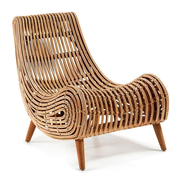 Rotan fauteuil met mahonie poten Kave Home Tika