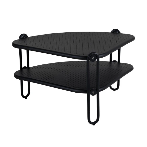 Deze salontafel voor buiten heeft een fijne driehoek vorm, waardoor het tafeltje mooi tussen twee loungemeubels in past. Zet drankjes en hapjes op het bovenste blad; voor tijdschriften en boeken is plaats in het open vak eronder! De salontafel is verkrijgbaar in zwart of wit en gaat samen met vrijwel elke moderne loungebank of loungestoel.