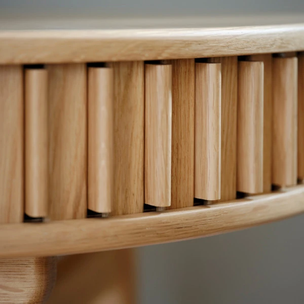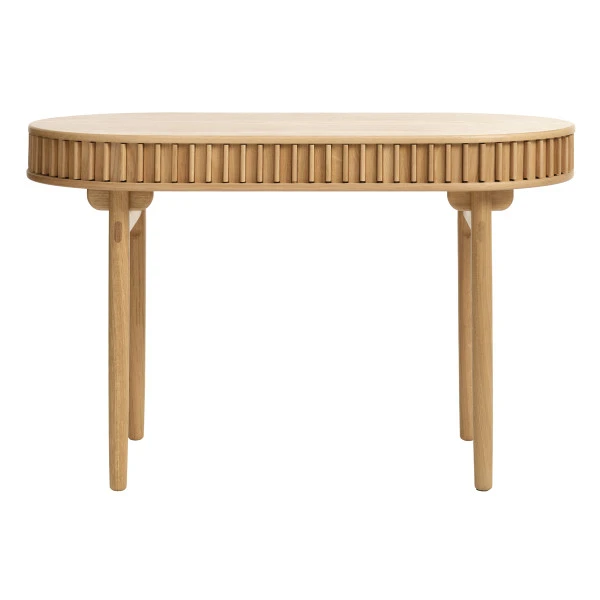 Dit bureau heeft een typisch Scandinavisch design: het is speels, minimalistisch en gemaakt van natuurlijk materiaal. Achter de roldeuren kun je kantoorartikelen netjes wegbergen, en wanneer de deuren dicht zitten zorgt dit voor een gezellig effect dankzij de stroken in het hout. Met een breedte van 120 centimeter is het bureau lekker compact. Een gezellig en praktisch meubel voor in de woonkamer, slaapkamer of je studio!