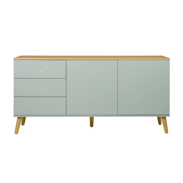 Je herkent de Tenzo Dot serie aan een Scandinavische design look met speelse poten en eikenhouten accenten. Bovendien heb je bij dit dressoir en de andere kasten uit de serie keuze uit verschillende kleuren: grijs, groen of wit. Welke is jouw favoriet?
