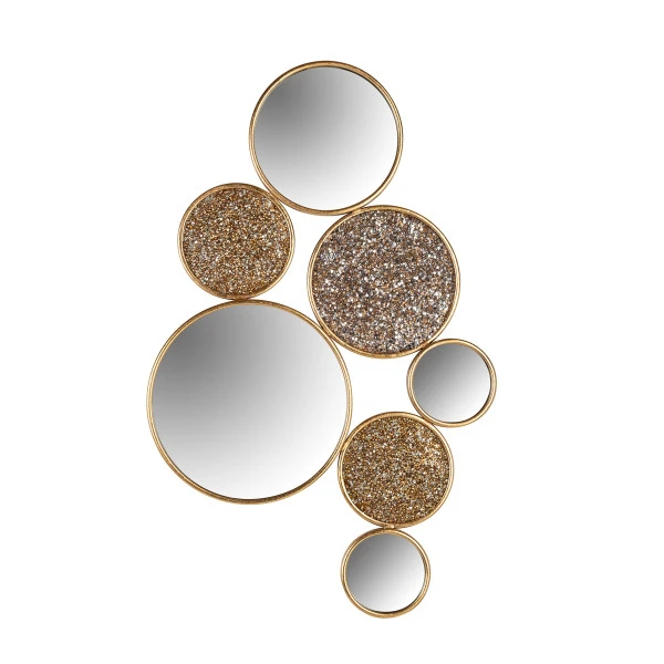 Met de Richmond Interiors Isiaha spiegels aan de wand krijgt je woonruimte een chique uitstraling. De set van ronde spiegels vormt een extravagant geheel met de drie Crushed Diamond elementen! De spiegels hebben een lijst van goud metaal met een geborstelde afwerking, waardoor de Isiaha een vintage tintje krijgt.