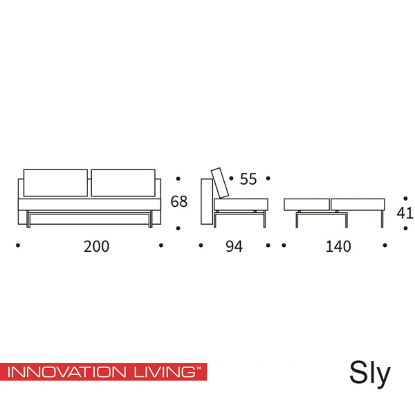- Slaapoppervlak: 140 x 200 cm, Zithoogte: 41 cm, Zitdiepte: 55 cm