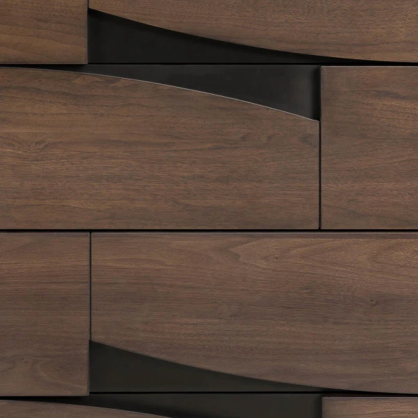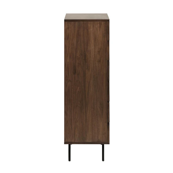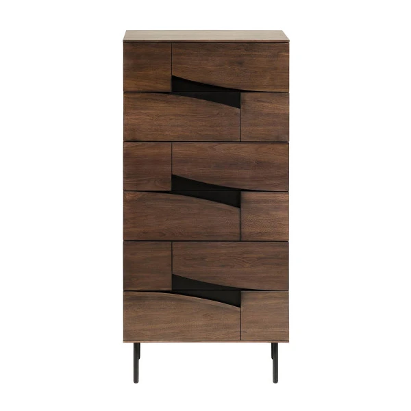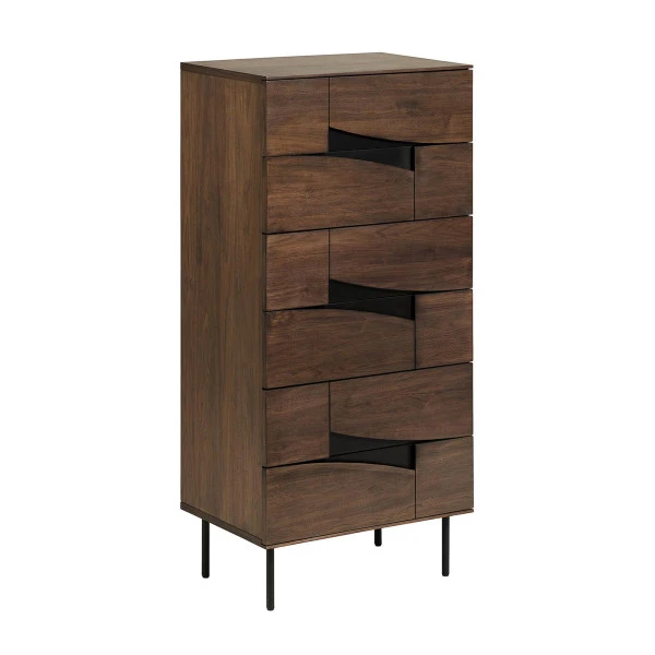 De meubels uit de Kave Home Cutt serie zijn ontworpen door Jordi Dedeu. Je herkent het design meteen aan de details van zwart metaal te midden van het warme walnoot! Deze ladekast is verkrijgbaar in een smalle en brede variant. Ook vind je in de serie een walnoothouten dressoir en tv-meubel.