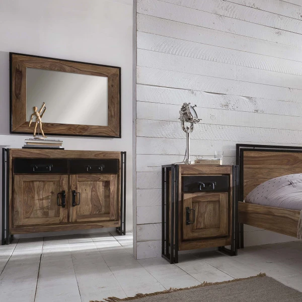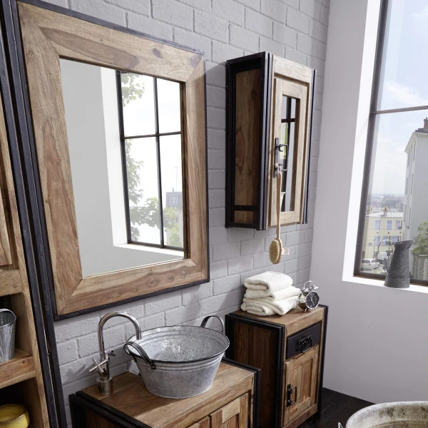 Ook je spiegelbeeld krijgt stijl en klasse wanneer je jezelf in deze wandspiegel bekijkt. En als je genoeg hebt van je eigen reflectie, kun je nog even genieten van het prachtige lijnenspel in het sheeshamhout. Het contrast tussen hout en metaal zorgt voor een robuust effect, waardoor de spiegel uitstekend staat in een industriële inrichting.